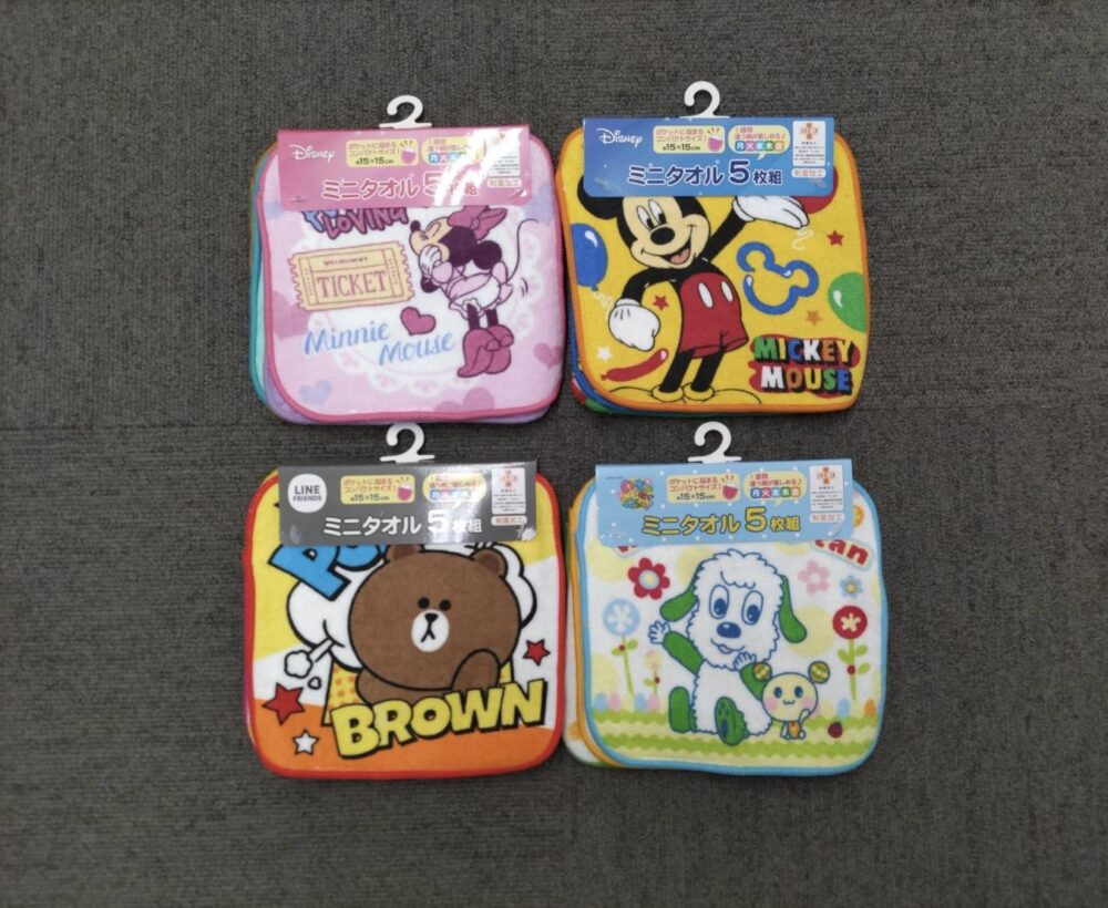 キャラクターのミニタオルがセットで登場✨ 一気にそろってお出かけも安心です☺